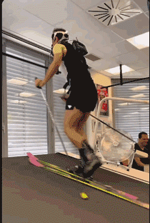 在实际登滑中,如果陡坡超过35度,雪板下的贴皮就卡不住雪了,需要把板脱下来转换成徒步爬升,这个比赛设置就是在模拟陡坡。